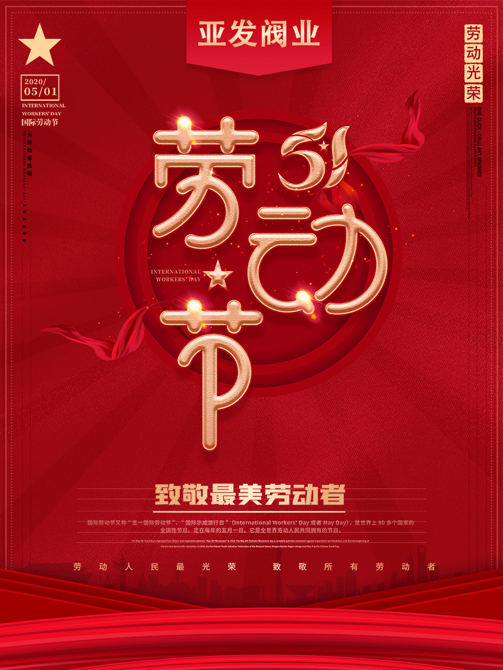一年一度的五一小長假將至,在這里浙江亞發(fā)閥業(yè)有限公司全體員工向您及您的家人送出最真摯的祝福,提前祝大家勞動節(jié)快樂!
